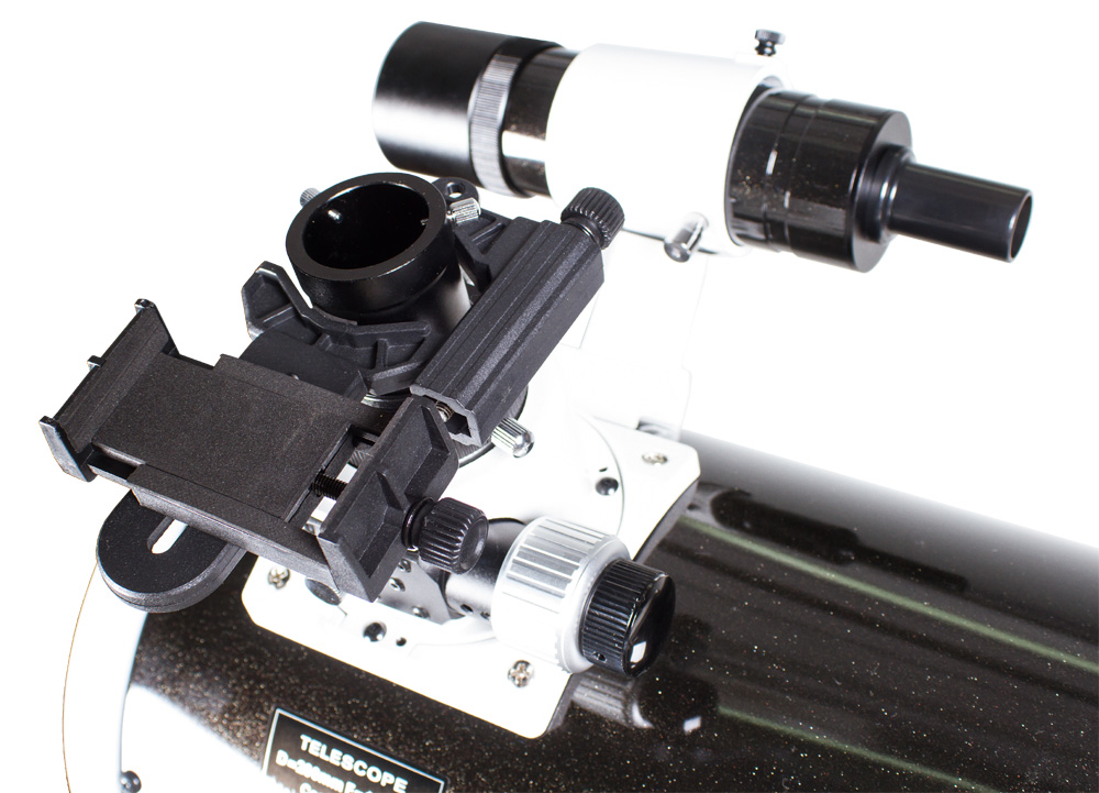 Адаптер для смартфона на телескоп – аксессуар, позволяющий снимать космос при помощи камеры мобильного телефона. Он тоже устанавливается в окулярный узел (отдельные модели крепятся поверх окуляра) и фиксирует смартфон на телескопе. Дополнительные аксессуары, как в случае с Т-адаптером, не нужны. Однако совместимость с имеющимся оборудованием проверять все-таки необходимо.