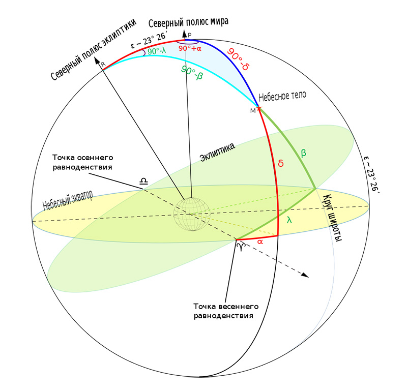 Линия эклиптики и экватора не совпадают. На текущий момент угол между ними составляет 22 градуса. Из-за этого отклонения происходит смена времен года.