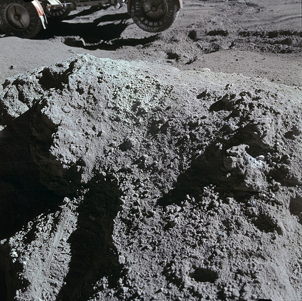 Лунный грунт, или реголит, уходит вглубь поверхности на 4–12 метров. Он описывается как рыхлый, содержащий в себе частицы, различающиеся по размеру и форме, и образован, как предполагают исследователи, в результате совокупности следующих факторов: резких перепадов температуры, выветривания, извержений, метеоритной бомбардировки и проч.