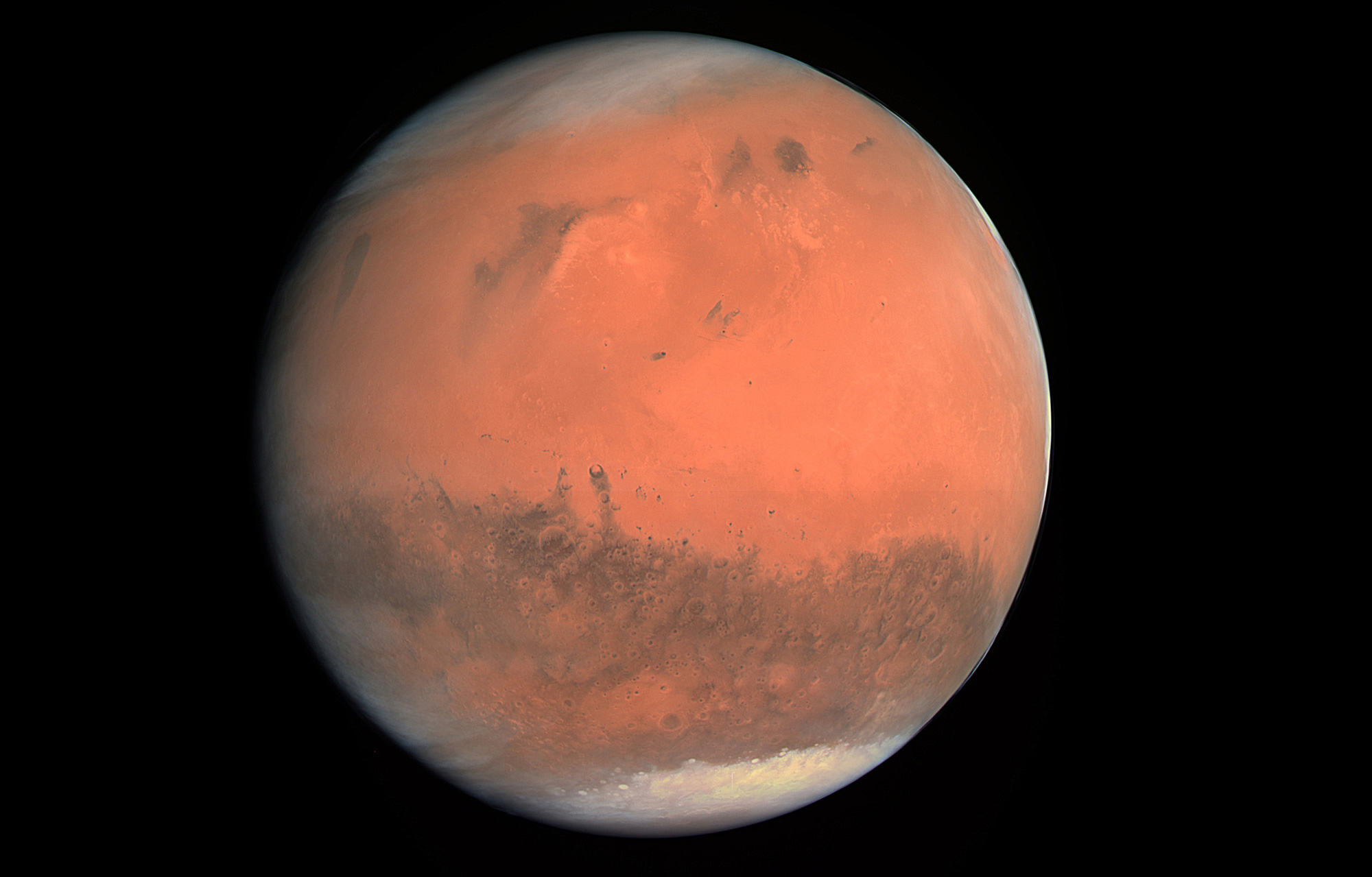 Изображение Марса, на основе снимков АМС «Розетта», сделанное 24 февраля 2007 года с высоты 240 000 км