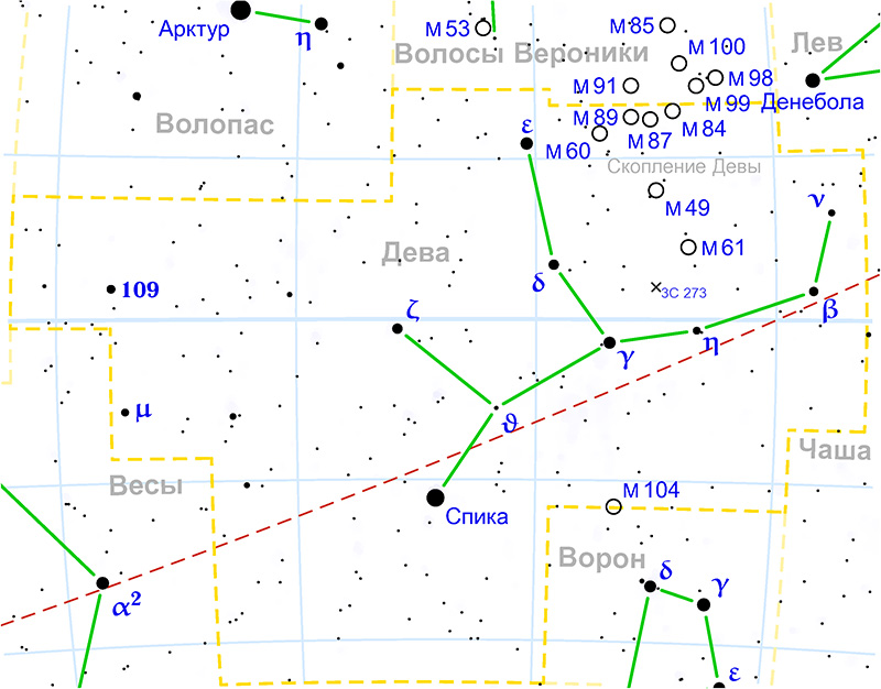 Звезда Спика – это альфа созвездия Девы и самый яркий его компонент. Это двойная звездная система, в которой главным является синий субгигант. Но постепенно его размеры уменьшаются. Из-за сильной яркости и размеров Спики-А ученым удалось обнаружить ее бинарность только благодаря спектроскопу.