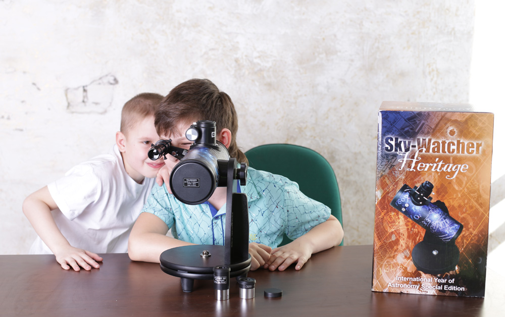 Помимо рефракторов, детям отлично подойдут небольшие рефлекторы Ньютона на настольных монтировках Добсона, например Levenhuk LabZZ D1 или Sky-Watcher Dob 76/300 Heritage . Яркий дизайн моделей непременно понравится детям, а компактность – родителям.