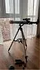 Монтировка – классическая вилочная в азимутальной ориентации. На вертикальной оси есть микровинт, благодаря которому монтировка движется более плавно. Тренога сделана из алюминия и снабжена полочкой для аксессуаров. При необходимости высоту треноги можно регулировать.